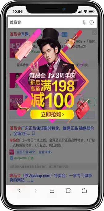 触发词:品牌词,或品牌直属活动次精准触发(词量)展现位置:相关品牌词搜索结果页中央浮层显示,图片或GIF动图。触发机制:同一用户一小时内重复搜索最多显示3次,4s自动退出;可单独购买,也可和品专一起购买(会展现在品专结果页上方)售卖方式:单独线下询价,按天售卖营销价值:活动促销,新品上市